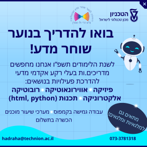 מנהלת או מנהל יחידת נוער שוחר מדע וטכנולוגיה במרכז לחינוך קדם אקדמי תשפה/117