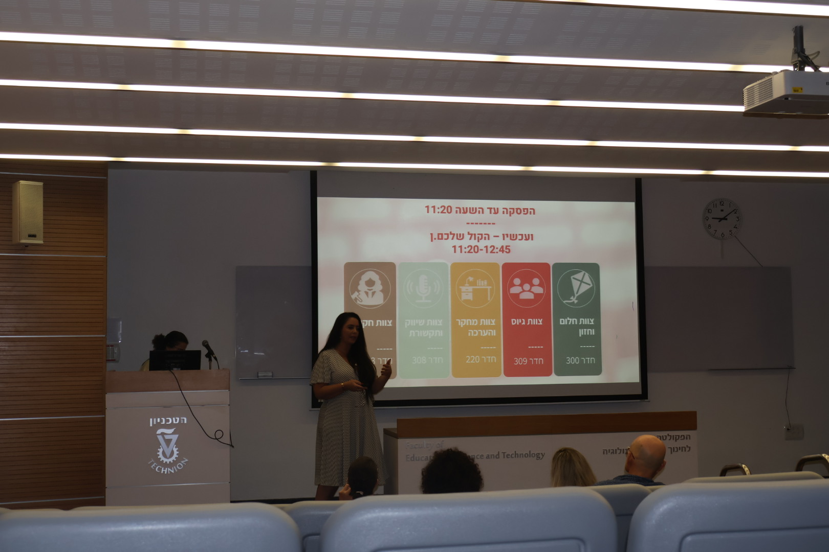 וד"ר עינת שושן-רפאלי – ממוסד נאמן ומכללת 'אורנים' שהציגה את חשיבות הרציפות החינוכית והקשרה לחוסן של התלמידים והצוותים החינוכים, ובנוסף הציגה את מודל העבודה שנבחר (קולקטיב אימפקט) ואת רשת השותפים שנבנתה לטובת פתרון הבעיה.